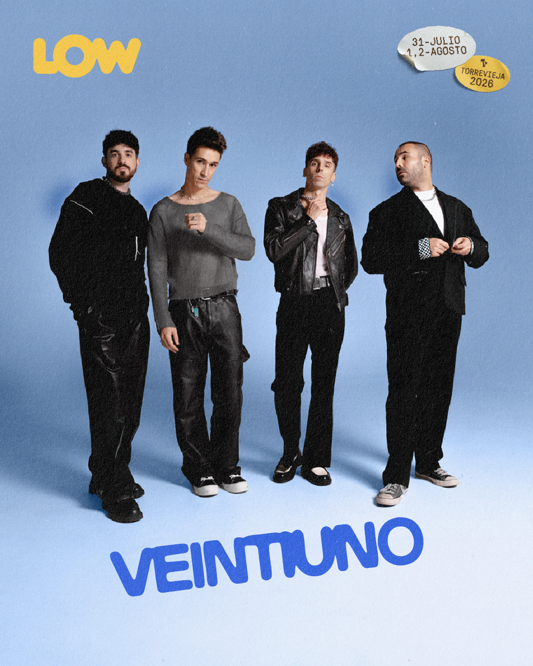 Veintiuno se consolida como uno de los nombres de referencia del pop alternativo español con su trabajo más reciente,” El arte de perder”. Con grandes éxitos como “La vida moderna” la banda toledana ha sabido combinar funk, R&B y pop con letras directas y cercanas en lo que será un directo repleto de energía, himnos generacionales y una conexión fuerte con todos los lowers.
